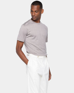 Dalla manica classica a quella con risvolto, trova il complemento perfetto per ogni look nella nostra collezione di T-shirt su misura, sviluppata in morbido, lussuoso e finissimo cotone egiziano Makò Filoscozia® 80/2, uno dei più pregiati al mondo. Disponibile anche in cotone Supima® Ultra fine, dalla straordinaria finezza 120/2, nell'esclusivo jersey di seta-cotone 2/115.000 o nel raro 100% jersey di lino European Flax 1/26.000.