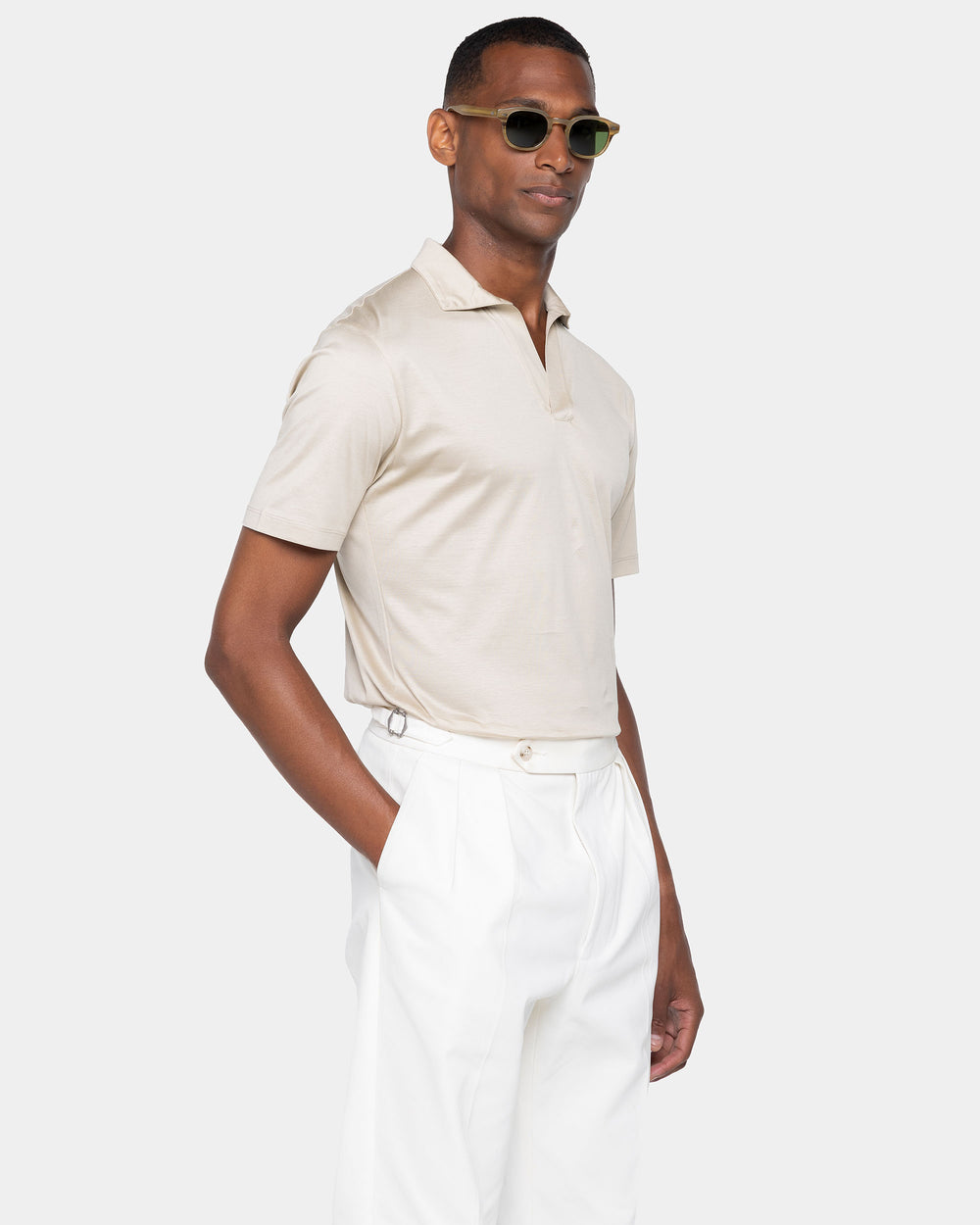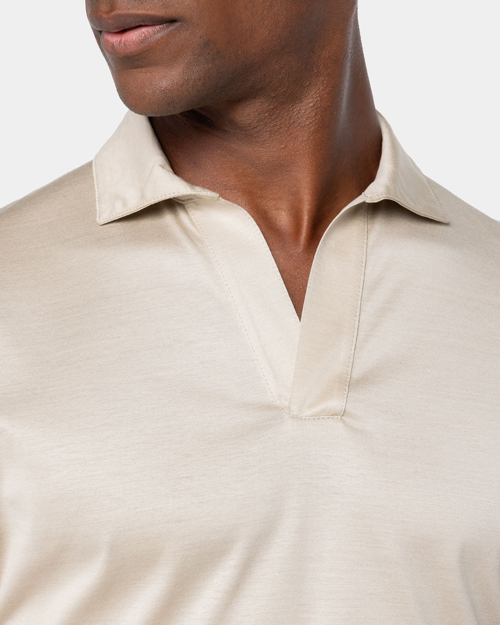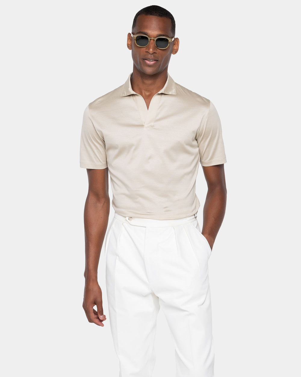 Una polo senza bottoni rappresenta la sintesi perfetta tra rilassatezza e raffinatezza.