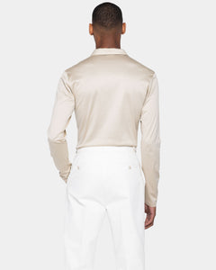 Il colletto a taglio francese, morbido e naturale, completa il design essenziale e fluido della polo, conferendole un’eleganza sobria e versatile, ideale sia in contesti informali che sotto una giacca.