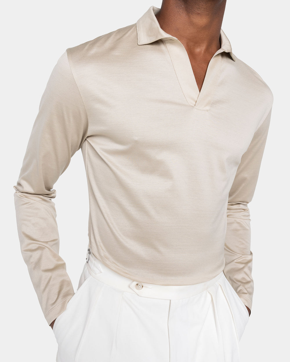 Una polo senza bottoni rappresenta la sintesi perfetta tra rilassatezza e raffinatezza.