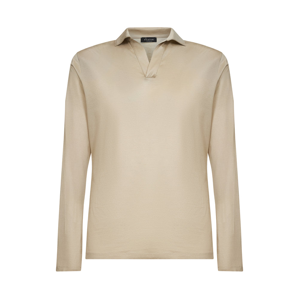 Frutto della continua ricerca di eccellenza firmata Filatori, si contraddistingue per la cura sartoriale dei dettagli e delle finiture, tra cui l’impuntura a vista su scollatura e colletto francese, che aggiunge un tocco distintivo e artigianale.
