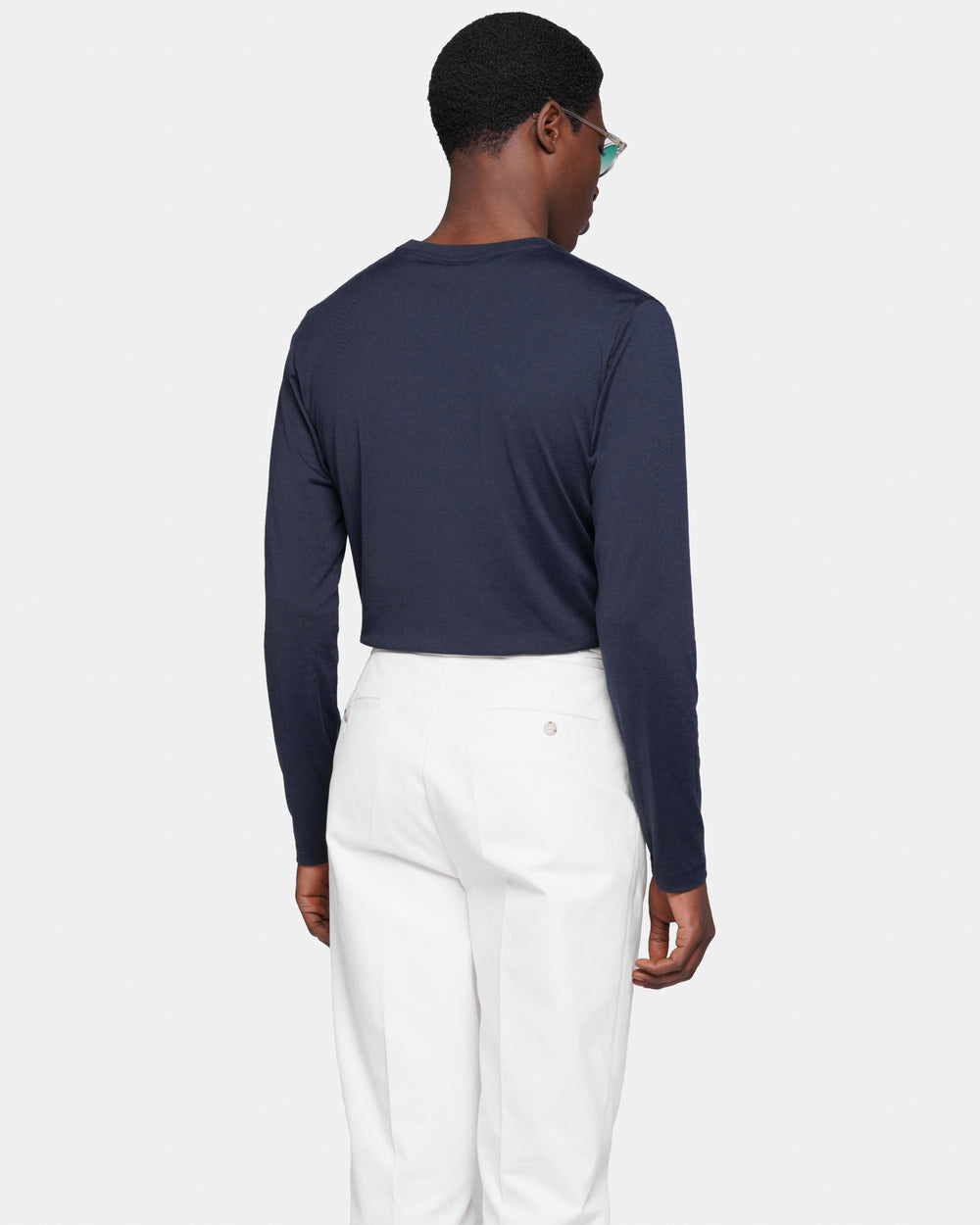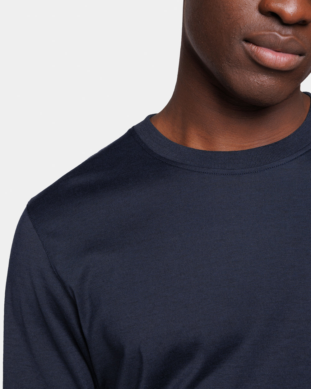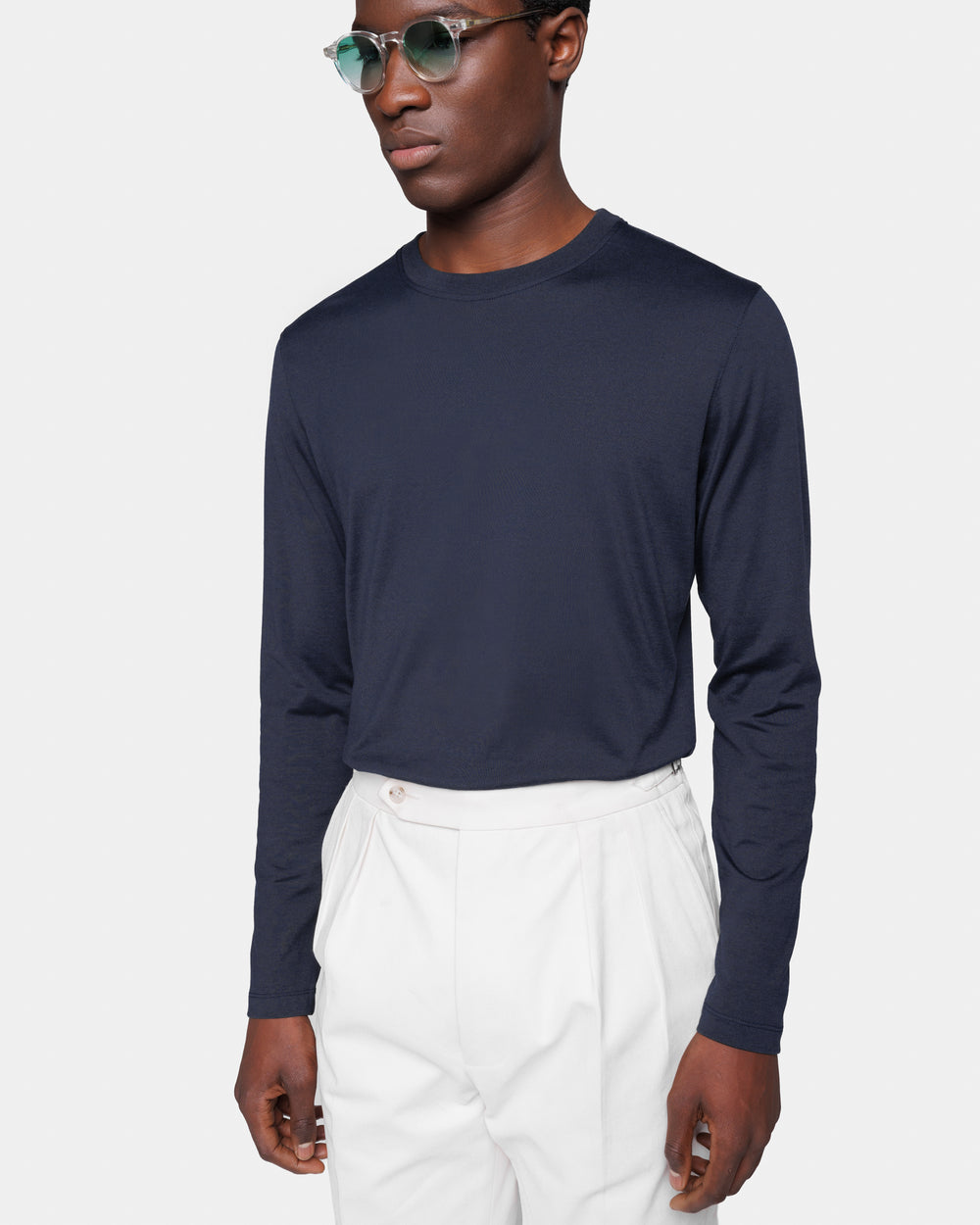 T shirt manica lunga soft tinta unita Blu Navy Seta Cotone | Filatori