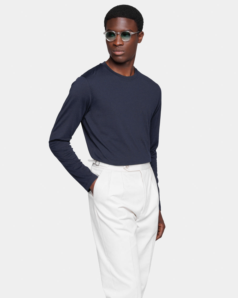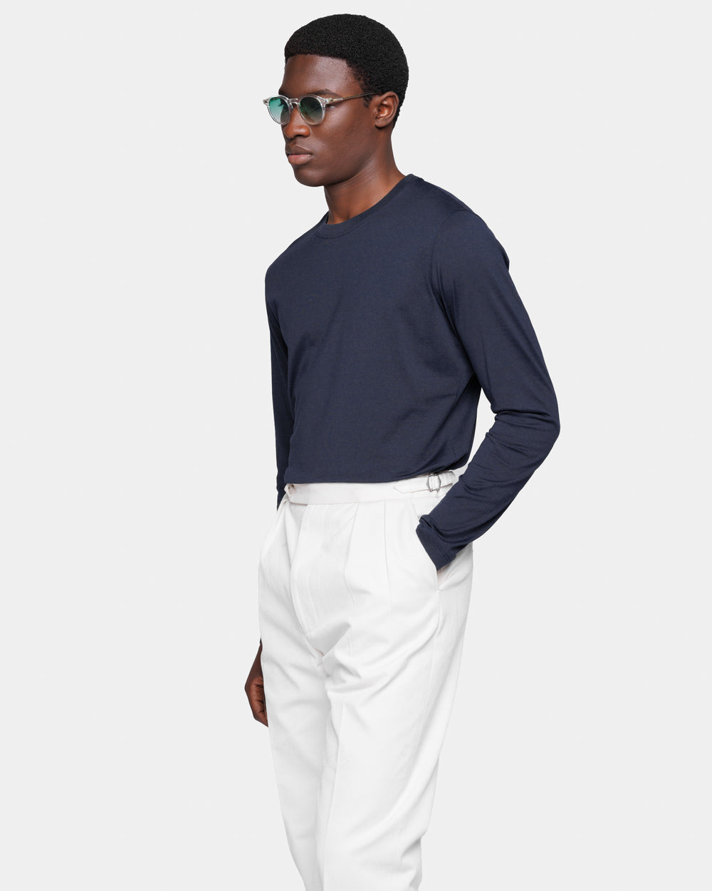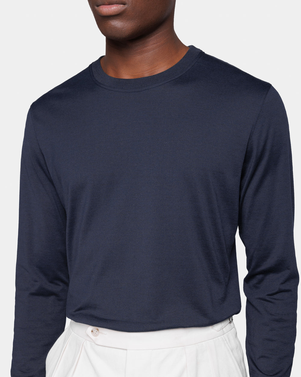 T shirt manica lunga soft tinta unita Blu Navy Seta Cotone | Filatori