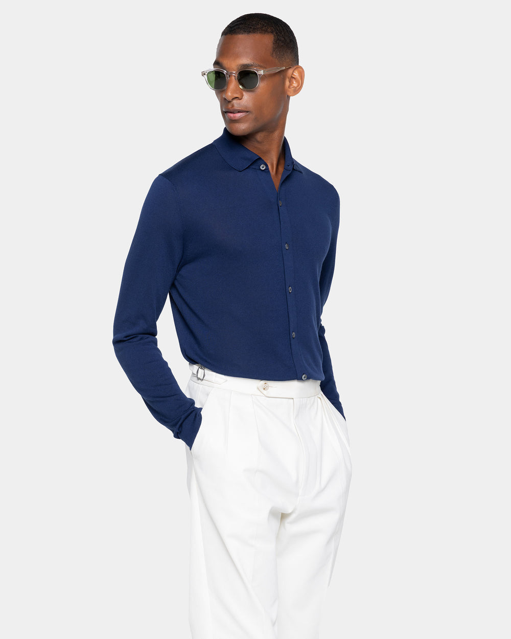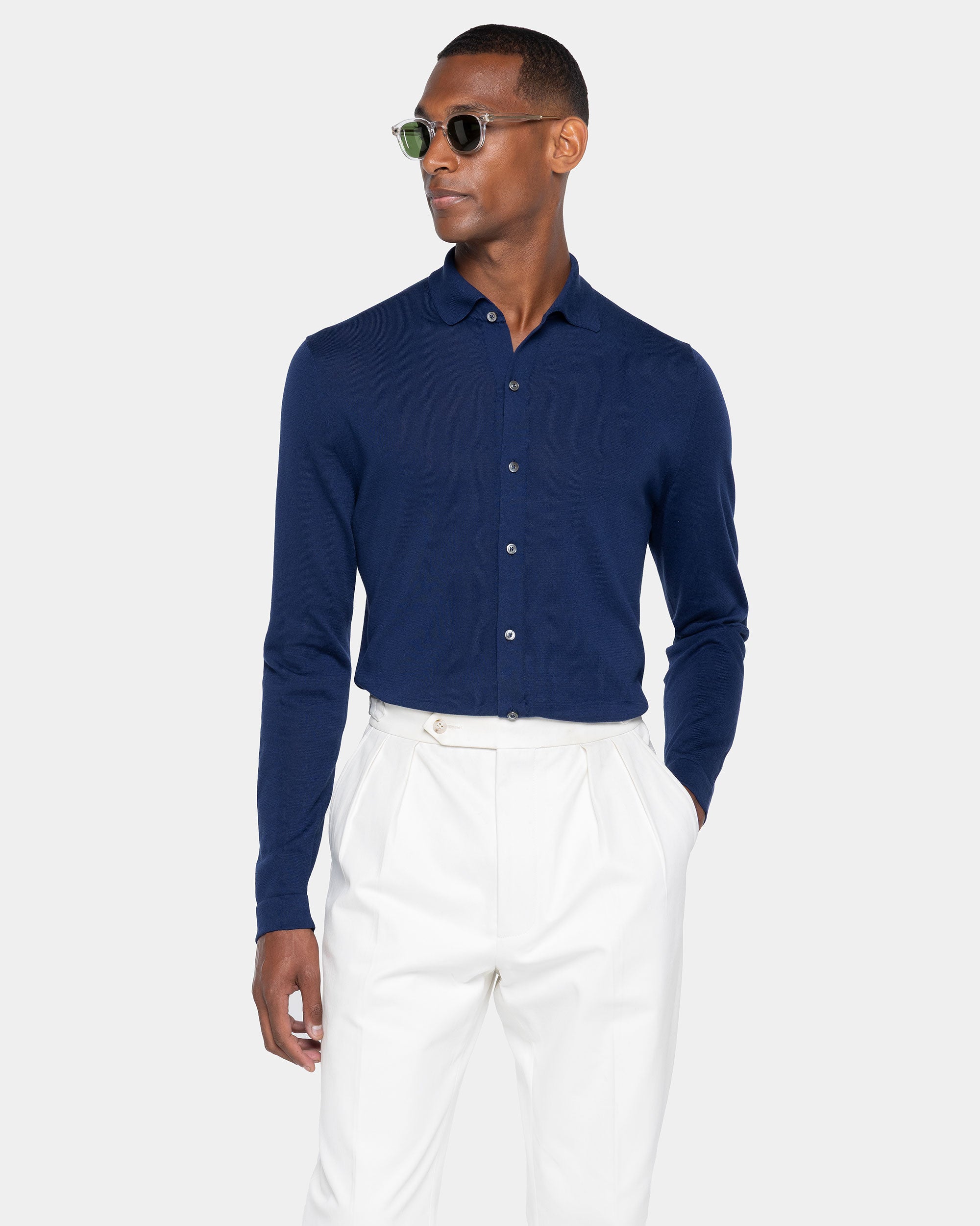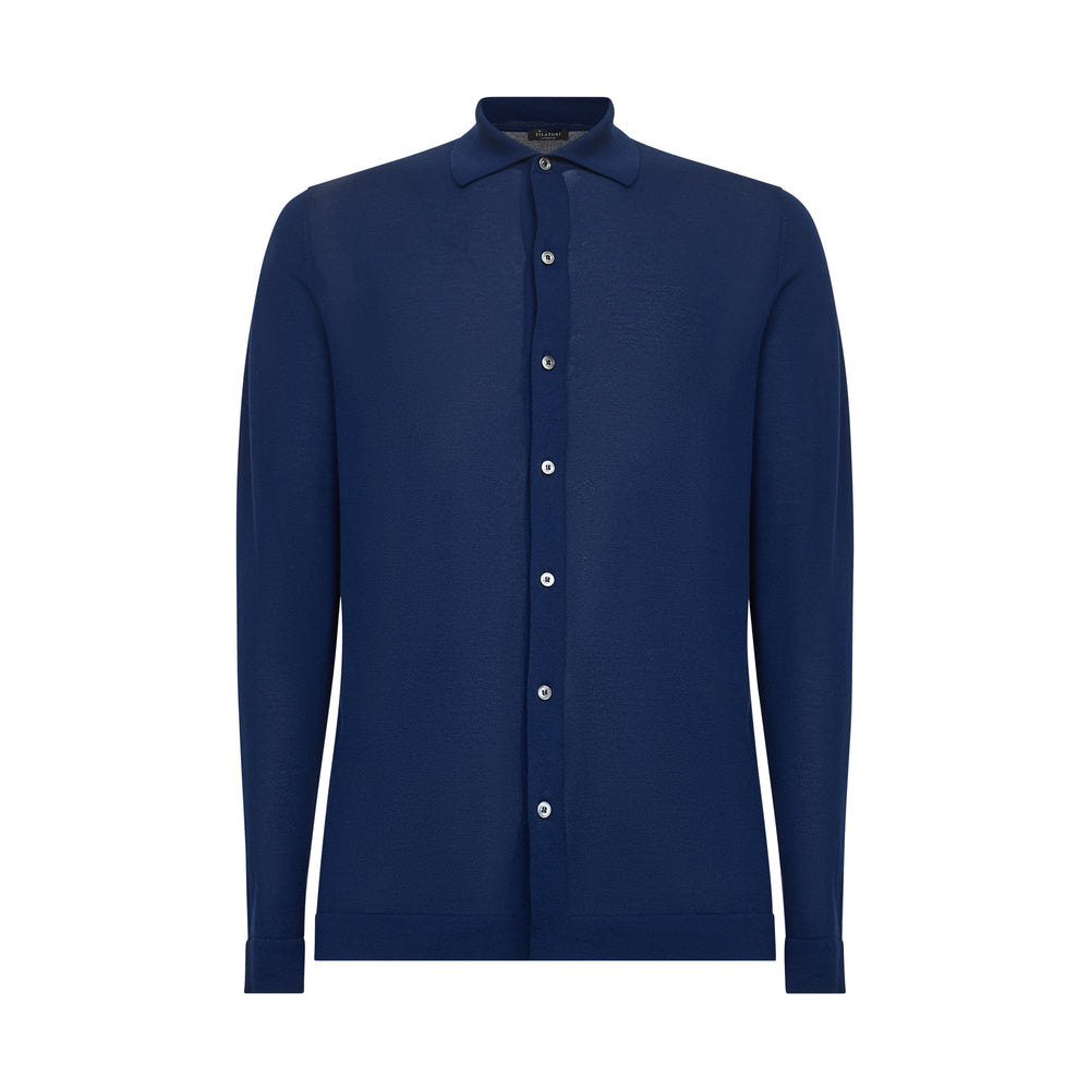 Blue Marine Long Sleeved Shirt Knitwear in Organic Cotton Mulberry Silk | Filatori