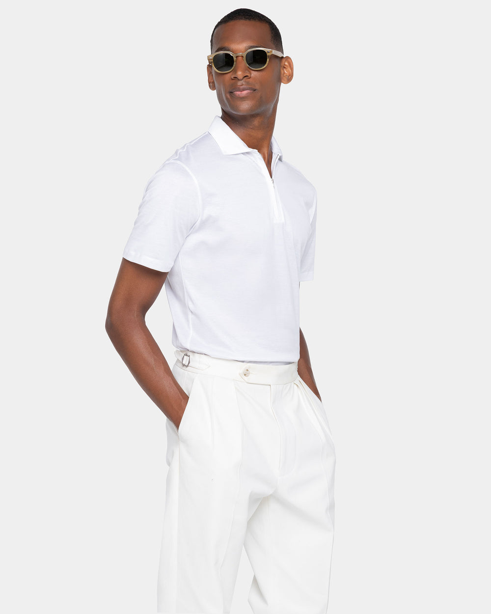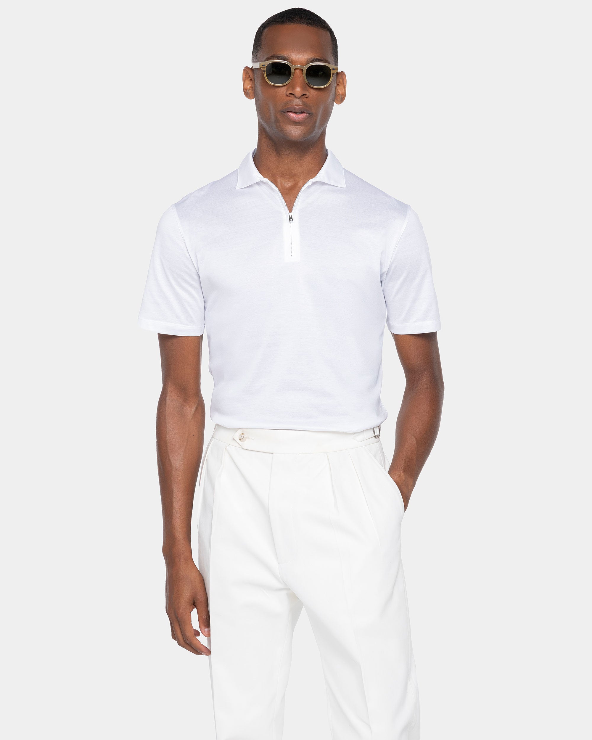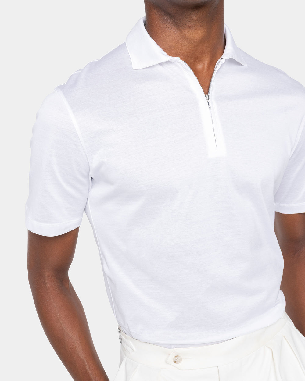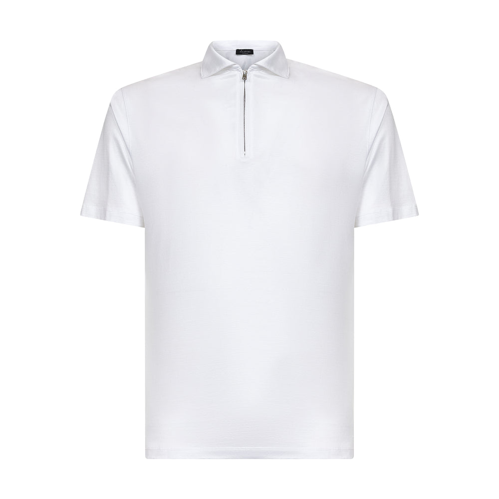 White Short Sleeve Half Zip Polo 100% Egyptian Cotton | Filatori