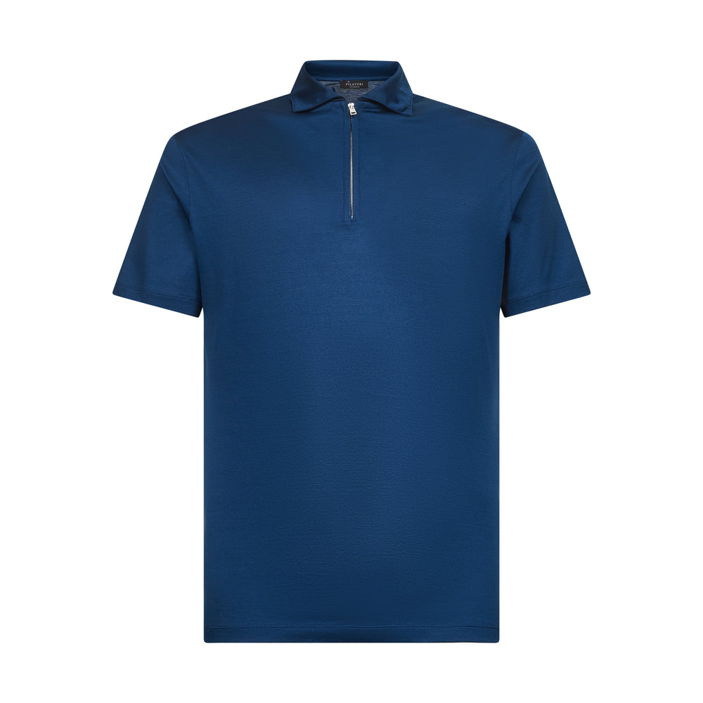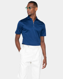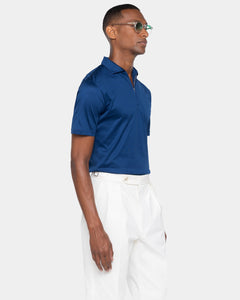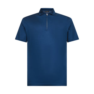 Blue Marine Short Sleeve Half Zip Polo 100% Egyptian Cotton | Filatori