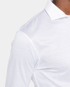 Made of 100% extra-fine 80/2 yarn-dyed jersey Filoscozia® Makò Egiziano cotton from the Italian weaving Tessilmaglia, it is light, bright and with a smooth and flowing hand, and is a precious pass part out of the contemporary wardrobe. This garment is the result of Filatori's loyalty to the pursuit of excellence and is characterized by high attention to finishes and details. The seams along the armhole-shoulder line add a touch of refinement, while the fully topstitched French-style neckline enhances the garment's construction.