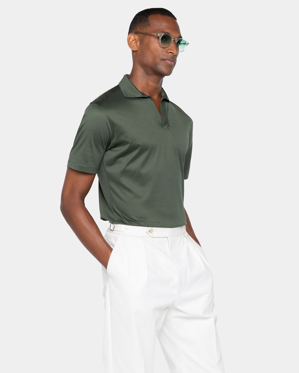 Military Green Short Sleeve Buttonless Polo 100% Egyptian Cotton | Filatori