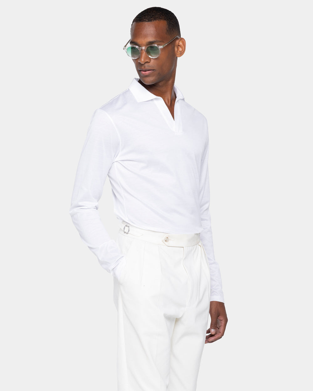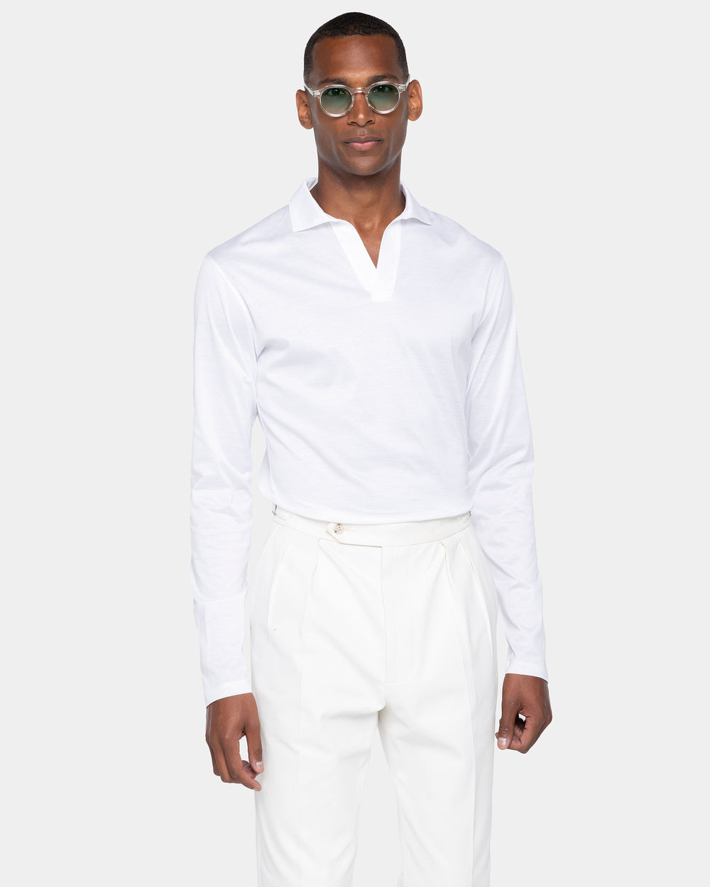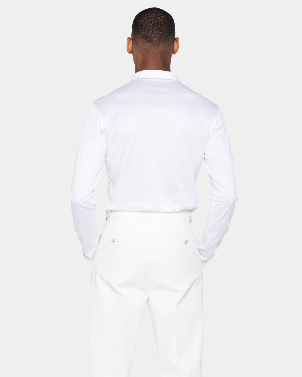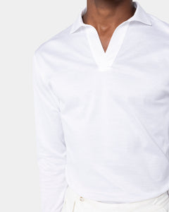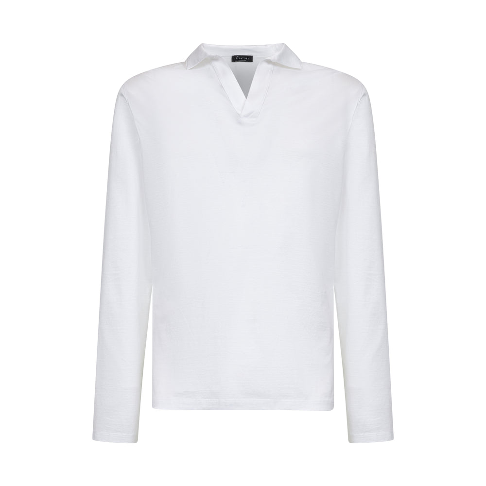 White Long Sleeve Buttonless Polo 100% Egyptian Cotton | Filatori
