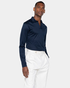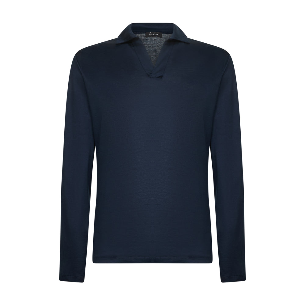 Blue Long Sleeve Buttonless Polo 100% Egyptian Cotton | Filatori