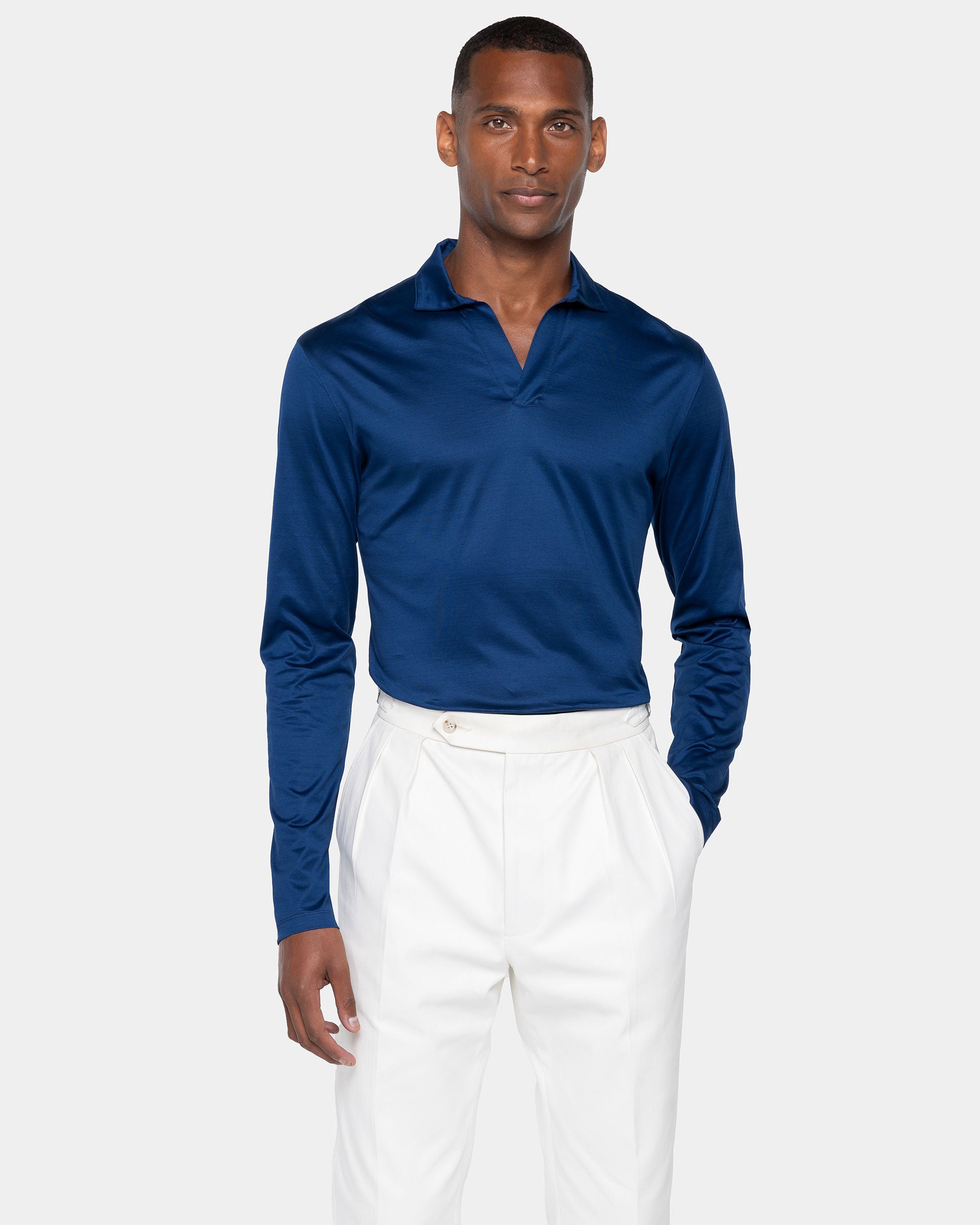 A buttonless polo is is the perfect blend of ease and refinement.