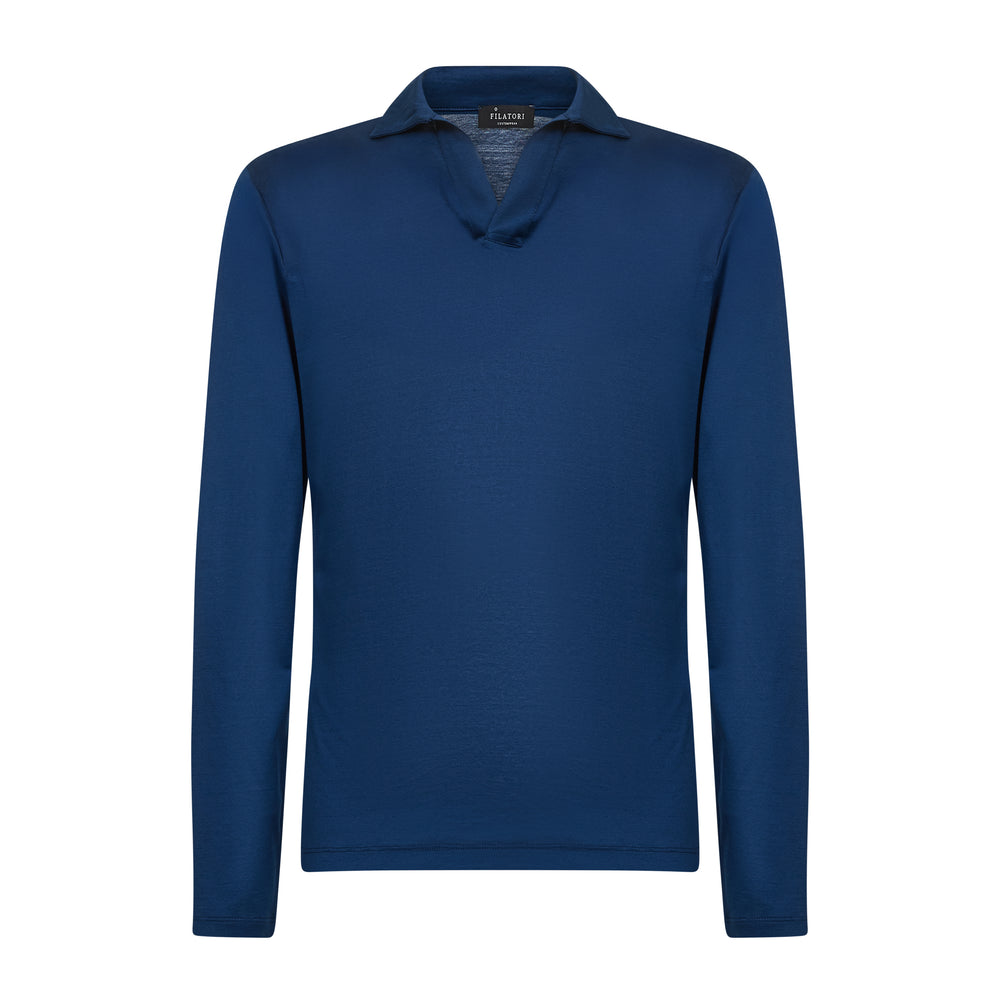 This garment is the result of Filatori's loyalty to the pursuit of excellence and is characterized by high attention to finishes and details. The visible topstitching on the neckline and french collar, adds a distinctive and artisanal touch.