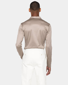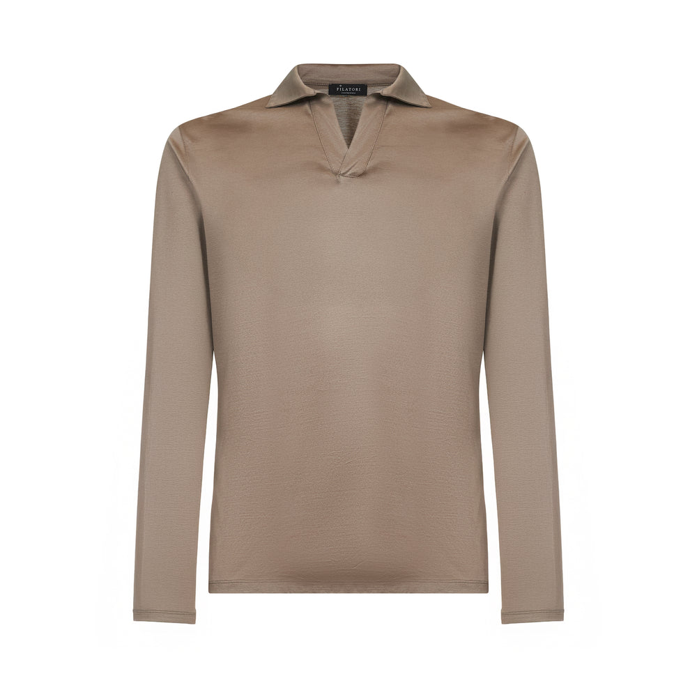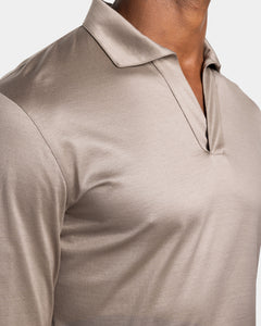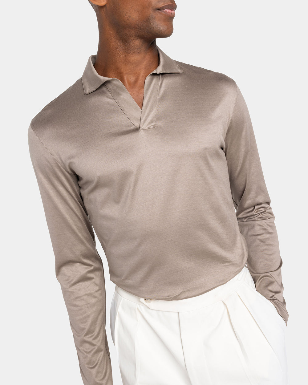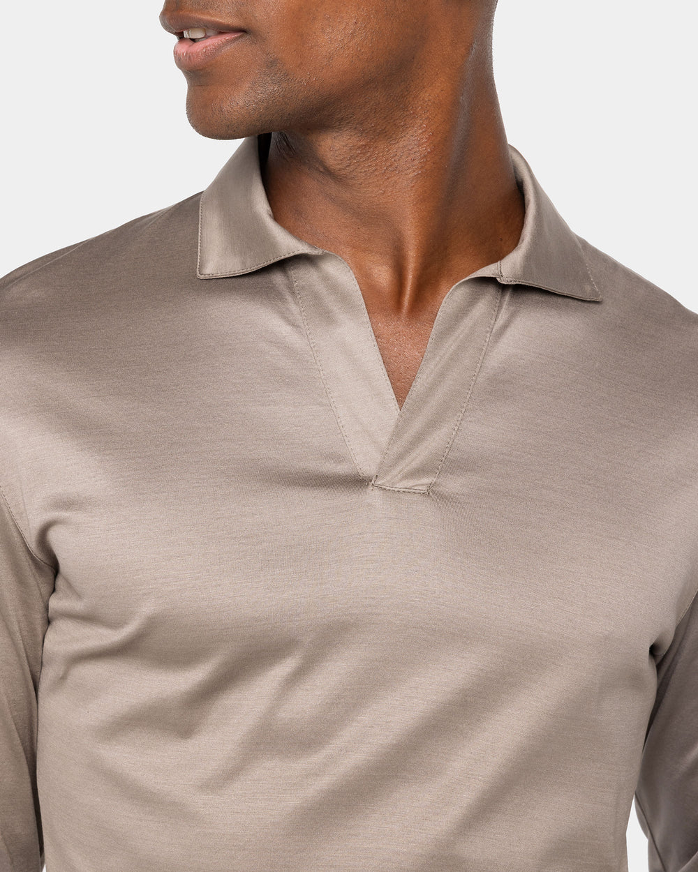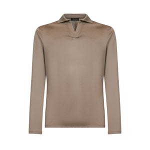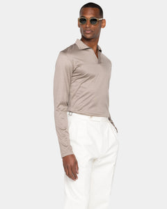 Taupe Long Sleeve Buttonless Polo 100% Egyptian Cotton | Filatori