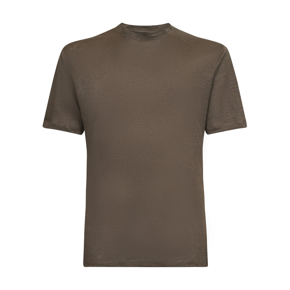 Crafted from luxurious 100% linen jersey 1/26 certified by Masters of Linen®, sourced from the historic knitwear mill Botto Giuseppe e Figli, this garment stands out for its melange texture, achieved through an exclusive fiber-dyeing process that gives the color remarkable depth and vibrancy.