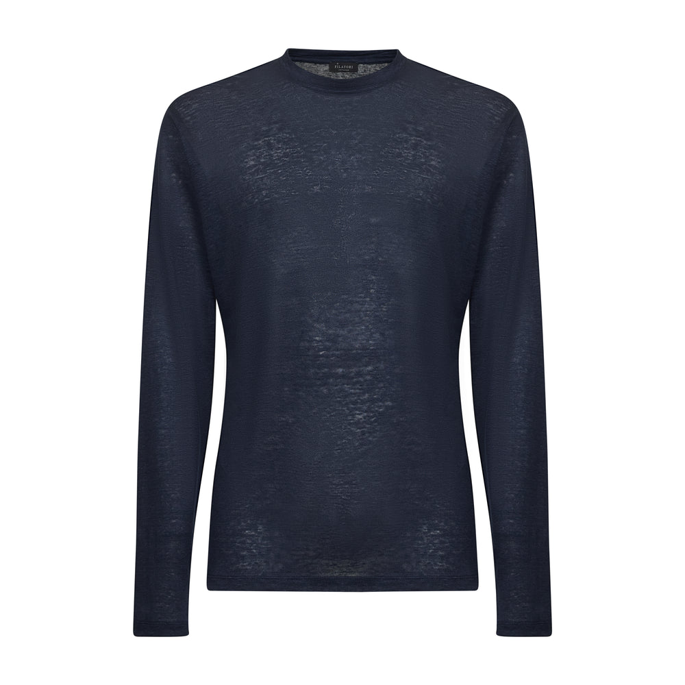 Crafted from luxurious 100% linen jersey 1/26 certified by Masters of Linen®, sourced from the historic knitwear mill Botto Giuseppe e Figli, this garment stands out for its melange texture, achieved through an exclusive fiber-dyeing process that gives the color remarkable depth and vibrancy.
