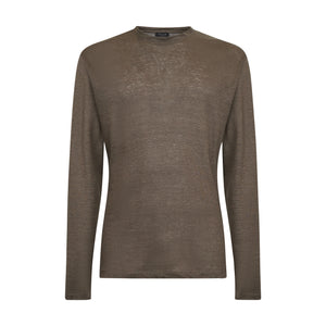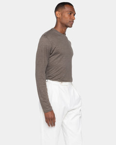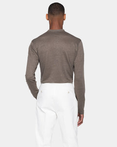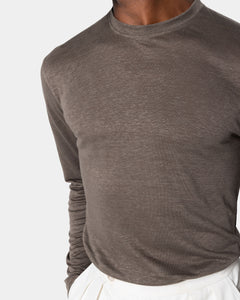 Crafted from luxurious 100% linen jersey 1/26 certified by Masters of Linen®, sourced from the historic knitwear mill Botto Giuseppe e Figli, this garment stands out for its melange texture, achieved through an exclusive fiber-dyeing process that gives the color remarkable depth and vibrancy.